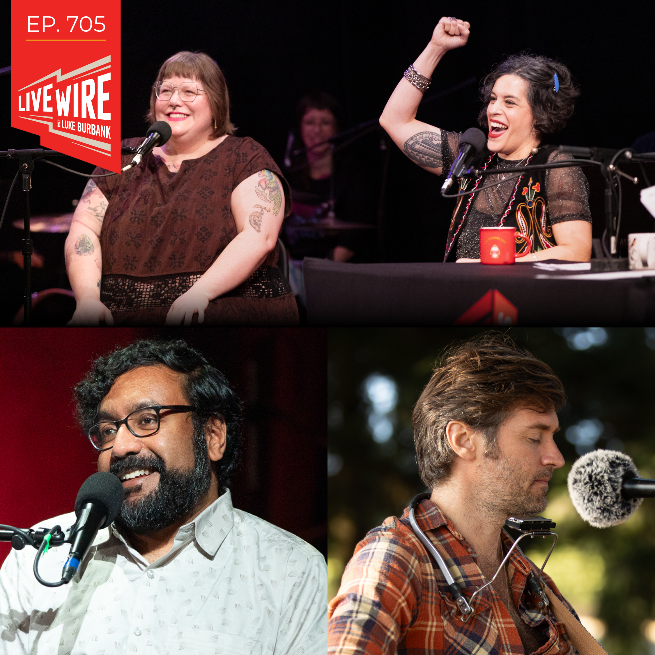 Luke Burbank: Our House Sound is by Aaron Tomasko, and our house band is Sam Pinkerton, Ayal Alves, Ethan Fox Tucker, and A. Walker Spring, who also composes our music. This show is mixed by Eben Hoffer and Tré Hester.
